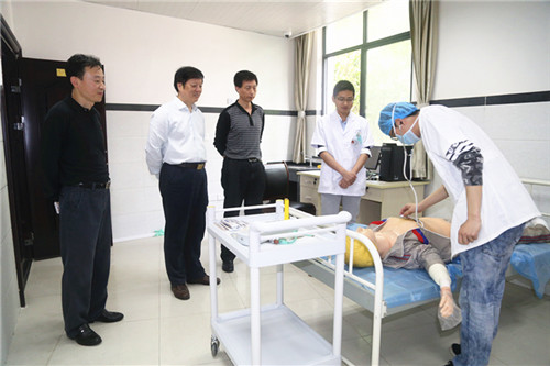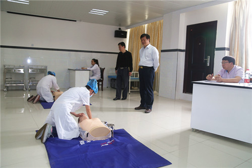 本次毕业技能多站考试共分为七站,以笔试、现场操作及口试等多种形式开展,包括病史采集与病例分析、心肺复苏、体格检查、阅读心电图、阅读X光片等多项内容。张志平院长、黄啸林副院长带队仔细检查各项考务工作,对各站考试依次进行巡视,在各考场,他们不时驻足观察考生操作情况。在第二站缝合拆线操作考试现场,观看一名考生操作完成后,张院长同该考生进行了简短交流,他耐心询问该考生对本次考核的自我评估以及是否有信心面对接下来的实习任务和实际临床操作,鼓励考生不断加强学习,提高临床实践能力。