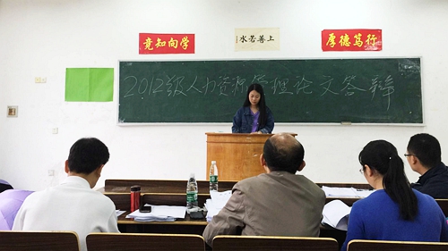 本次答辩共有15个答辩小组,每个答辩小组由答辩组主席、答辩组教师和答辩组秘书组成。答辩工作准备充分,秩序井然;答辩现场气氛紧张热烈,松弛有度。按照答辩规则和流程,同学们首先向答辩组教师简要陈述自己论文的内容与框架以及论文的创新点,接着答辩教师结合学生论文,对每个同学都提出了有针对性的问题,学生作答后教师再给出建设性意见。参加答辩的同学普遍反映通过此次答辩,获益良多。