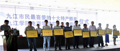 6月6日上午,“九江市民最喜爱的十大特产”颁奖暨“九江学院电商学院实习基地”揭牌仪式在九江市特产中心举办。市委常委、市委农工部部长董金寿出席仪式,并参观了九江特产中心。市委农工部副部长刘瑞平、九江学院电商学院院长郑祚双、市商管办调研员柳兴华、市旅发委副调研员胡细根,市新闻工作者协会常务副会长刘智真等出席仪式。八里湖新区党工委委员、管委会副主任艾菲主持仪式。九江特产企业代表、新闻记者等共计100余人参加了活动。