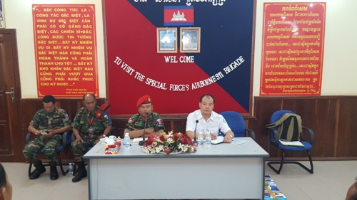 6月6日,柬埔寨王家研究院孔子学院中方院长帅式毅应邀参加王家军911旅特种伞兵部队汉语中心开课仪式。911旅副司令孙桑郎将军(SUM SAMNANG)热情接待帅式毅院长并一同出席仪式。