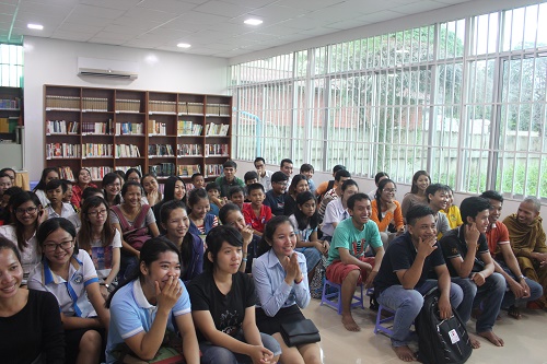 下午五时,谢莫尼勒阁下与帅式毅院长和孔子学院师生进行了一场关于中国传统节日的座谈会。座谈会中,谢莫尼勒院长为柬埔寨学生生动讲述了中国传统节日的传说、意义及各种有趣习俗。并通过中间两国文化习俗的对比,找出了中柬两国的文化共同点,从而使学生对中柬两国的文化有了更深刻的理解。