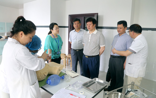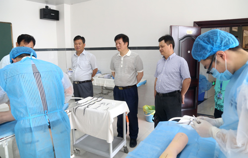 临床医学院2013级、2014级、2015级住院医师规范化培训学员2015-2016年度技能多站考试陆续开展。为严肃考场纪律,加强考风建设,确保考试有序开展, 6月13日上午,张志平院长、党委张南华书记、纪委刘英明书记、胡志坚副院长带队巡视考场,检查考务工作、考场秩序,科教科曾泉科长,临床技能中心韩峰主任等科室负责人参加巡考。