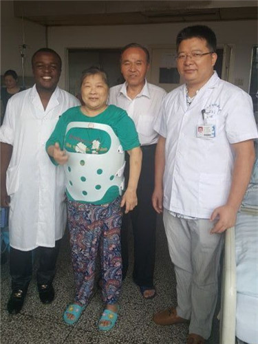 入院后,朱述浪主任立即组织蒋宇平医师和汪智文医师讨论为患者制定最佳治疗方案,术前对患者进行监测、控制血糖等对症治疗,待血糖控制良好后,于7月4日为患者在全麻下行腰3-骶1全椎板切除减压+髓核摘除+Cage植入+自体植椎间融合+钉棒系统内固定术。术后患者恢复情况良好,并且在术后早期(切口尚未拆线)患者就已经可以在医护人员的指导下,下床负重活动而无任何腰腿疼痛等不适症状,为患者彻底根除了病痛。