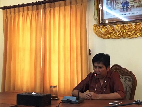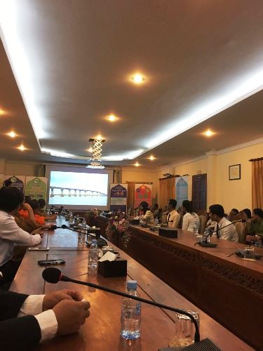 谢莫尼勒阁下在讲座中介绍了孔子学院近7年所做的工作,并通过三分钟了解“一带一路”视频直观地介绍了“一带一路”的构想。他指出,“民心相通”是促进“一带一路”的构想顺利实现的前提。民心相通就必须要求两个国家之间相互沟通、相互理解、相互认同,为了实现这一目标,首先要文化先行,文化互动。中国和柬埔寨的文化有很多相同的方面,柬埔寨的文化受到中国文化的影响,同时中国文化在柬埔寨也逐步本土化。这种文化的相似性可以促使中柬两国更快地实现“互通”。他用幽默的语言诠释了中国历朝历代对柬埔寨的称呼,扶南、真腊、柬埔寨等的由来,彭萨格娜部长及文化部官员们纷纷互动,现场气氛活跃且轻松。