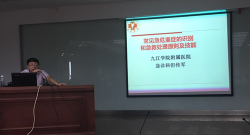应都昌县人民医院科教科邀请,医务科但传军主任为全体医护人员作了《急危重症的识别和紧急处理原则》的讲座, 通过一个个真实的案例,讲解了在日常的医疗、护理工作中如何避免和减少医疗纠纷以及医患沟通的技巧,其通俗易懂、耐心细致的讲解深受全体医护人员好评。