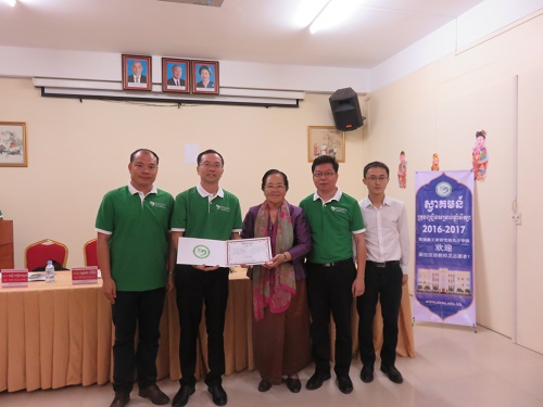 9月12日,柬埔寨王家研究院院长、孔子学院理事长克罗媞达阁下(H.E.KHLOT Thyda),王家研究院秘书长李树提龙阁下(H.E. LY Sothyrath),柬埔寨王家研究院孔子学院院长谢莫尼勒阁下(H.E.CHEA Munyrith)、中方院长帅式毅先生、新任中方院长夏修龙,国家汉办志愿者管理老师赵玉玺先生、张智波先生与新教师及志愿者亲切见面,并进行了座谈。