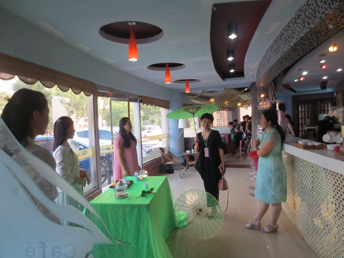 胡细根副主任一行参观了蝶湖左岸,并现场观看了我院师生准备的茶艺表演、调酒表演,对我院的师资力量、办学条件、人才培养给予了高度的肯定,也就校府双方合作机制、合作领域、合作方式、合作内容等问题与李院长进行了深入的交流,表示愿意在更大范围在更深程度上加大与旅游与国土资源的合作。
