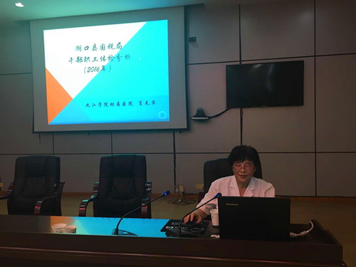 9月22日下午,临床医学院/附属医院体检科专家肖先萍教授、徐麒医师等应邀赴湖口县国税局开展干部职工体检结果分析座谈会,为该单位干部职工提供健康指导。
