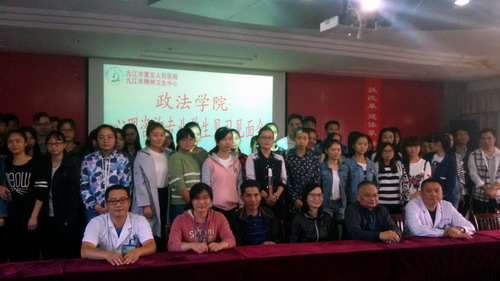 为了加强学生专业实践教学,增进感性经验,政法学院于2016年9月30日组织心理咨询专业2014级和2015级共54名学生赴九江市第五人民医院见习。