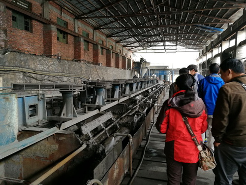考察组来到风景秀丽的吴山镇境内的储量为3万吨的中型锡矿-彭山锡矿,参观了彭山锡矿的采矿、选矿、加工、尾矿处理、环境治理、土地整治和修复,并带回几块锡矿的标本,捐献给学院地理实验教学中心的岩石矿物标本实验室。