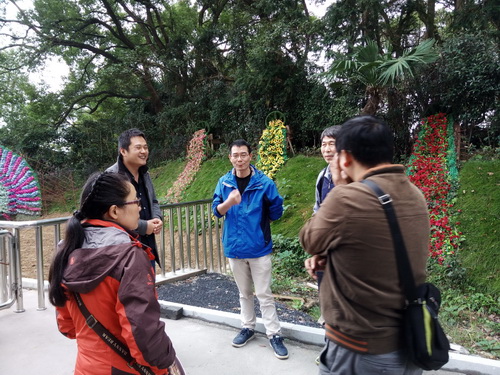 随后考察组来到聂桥镇宝山村的庐山博阳河生态休闲风景区,在经理景璜的带领下,参加调研了生态农业园的土壤、花卉、特色葵花园、接待和旅游开发的基本情况,双方初步讨论达成了建立学生实习基地的意向。