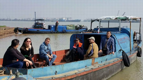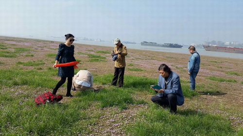 大家首先乘船考察了老爷庙水域水文、水质情况,调查了采砂船的种类、数量,了解了水域内采砂活动对湖区水文环境的影响。通过与渔民的访谈,了解湖区鱼类的种群特征和捕鱼活动对生态的影响。近期由于降雨量的减少,鄱阳湖进入枯水期,水位大幅下降,大片滩涂出露水面,为蓼花、芦苇等湿地植物提供了良好的生长环境,也为部分动物提供了活动条件。大家来到湖中滩涂区,认真观察记录了滩涂湿地植物生长发育情况和动物的种类、分布,分析了滩涂湿地的生态现状。