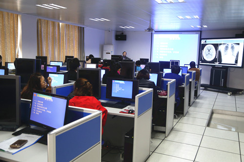 随后,临床医学院/附属医院放射科张腊喜主任在临床技能中心401影像训练实验室,以临床带教的形式为广大社区卫生服务站的骨干们进行授课。急诊科廖圆兵、曹雪峰将急、危重病人的识别及初步处理、简易呼吸器和气管插管现场操作等知识要点,以图文并茂及现场带教的形式为在场的学员提供专业讲解和现场操作指导。