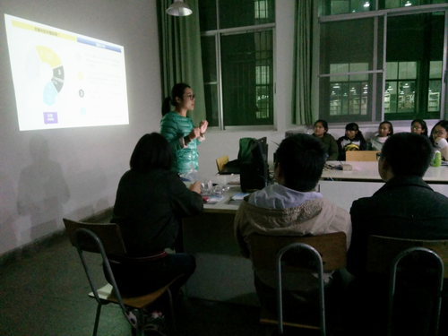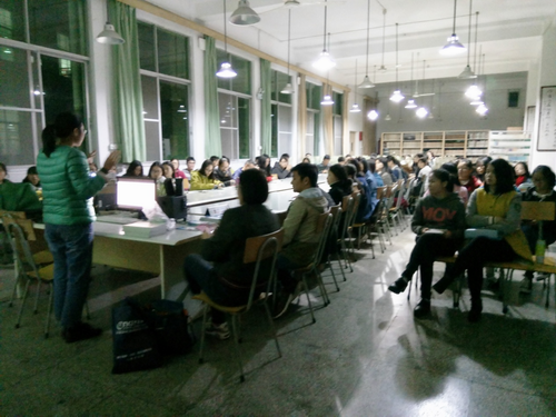 王蔚老师首先介绍了如何使用CNKI数据库,并重点介绍如何利用cnki数据库查找资料写作论文。王老师把查找相关资料过程中一些需要注意的细节和诸多学生在写论文中出现的问题紧密相连,这大大激发了同学们的兴趣。