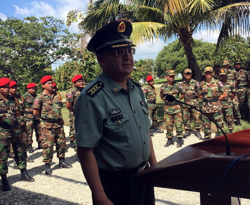 911旅司令查培得将军致辞,他首先对各位嘉宾的到来表示热烈的欢迎,并指出,911旅汉语中心自开课以来受到了孔子学院的大力支持,911旅有很多人想学习汉语,希望能有更多的汉语教师来到这里教授汉语,增进中柬双方的沟通了解。