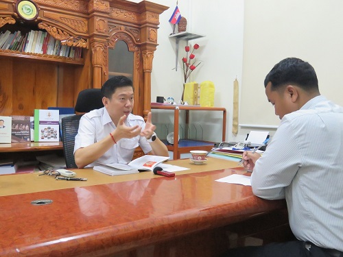 中柬友谊电台记者采访谢莫尼勒院长