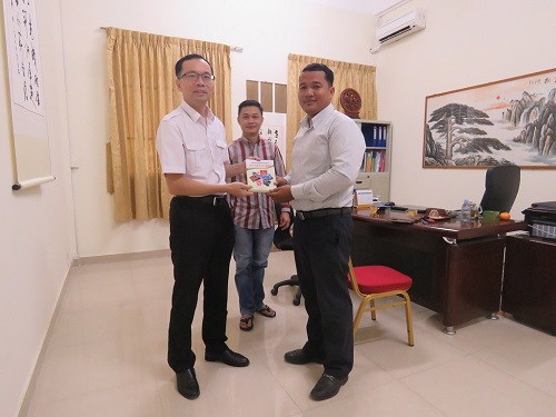 夏修龙院长给中柬友谊电台记者赠送书籍