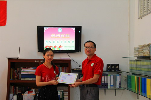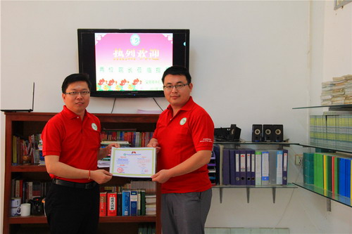 夏修龙院长为志愿者老师宋泽君颁发证书