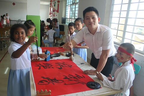 此次新春活动形式多样,分展览区、节目表演及亲子游戏等环节。活动现场有绘画作品展、书法体验、手工剪“春”体验,家长和学生们积极参与。节目丰富多彩,有钢琴伴唱、舞蹈、小品、乒乓球表演、手语歌等。小品《陶罐和铁罐》的演员们有模有样,语言诙谐幽默,台下笑声连连,学生们将中文课本搬上舞台,赢得大家的一致好评;手语歌《有你的地方是天堂》,学生们灵动的手语和欢快甜美的歌声使得台下掌声不断;武术表演《中华精英》令人大开眼界,将整场演出推向了高潮。在亲子游戏环节,家长与学生们在游戏中乐趣无穷。不少参与者都希望延长时间,让欢乐的时光多流淌一会。