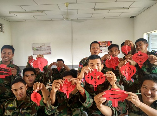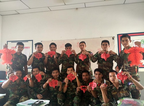 此次活动让初学中文的柬埔寨军人学生们对中国文化有了更加具体的认识和了解,并提升了他们对学习汉语的兴趣。活动后,学生杰力开心地说:“今天学了剪纸,做游戏,很开心,而且我还学到了很多中国文化知识。”其他学生也纷纷表示赞同,他们希望以后多举办这样的文化活动。(赵军)