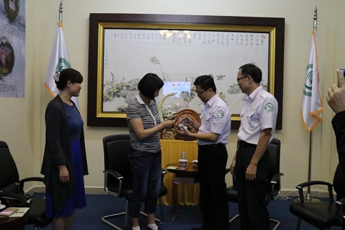 会谈结束后,华东交通大学周丽萍处长和唐斌院长参观了柬埔寨孔子学院,双方互赠纪念品,并合影留念。(洪姗)