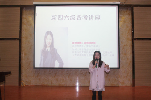 刘琦博士将本次讲座分为写作、阅读、听力等几个方面,针对每个方面展开不同论述,特别是针对当前四六级考命题走向、新型图画作文等作了重点分析和阐述。她再三强调,单词作为学好英语的基础性作用,告诉大家单词要天天不间断地记忆,同时介绍了联想法、词根词缀法等单词记忆方法,并举例说明。另外还重点讲到听力,针对大部分学生在听力方面遇到的单词不认识、认识但不知道发音、单词发生变音三个问题加以论述,现场气氛热烈、火爆。最后,讲座在阵阵掌声中落下帷幕,主办方为学生发放了教学反馈表,学生们认真地写下了参加此次讲座的收获与感受。