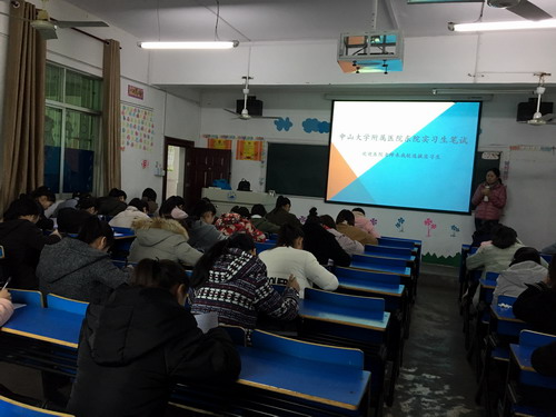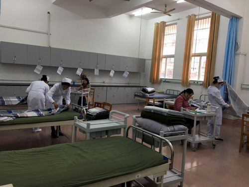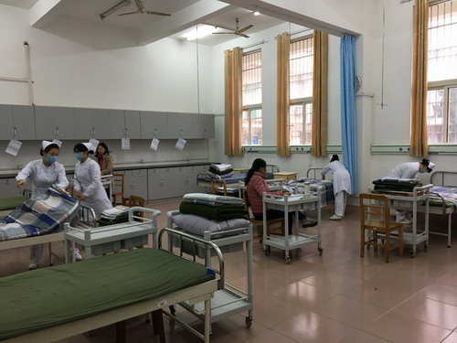医院本着严谨而公正的选拔规则,对报名竞选的同学进行了笔试、实际操作考试以及面试三个环节的层层选拔。在充分积极的准备后,共52名学生参加了医院组织的笔试,最终有34名同学进入了操作考试环节。实际操作医院方面给出了“铺床”这一考题,以检验同学们对最基本的护理技能掌握情况。随后,通过两项考核的同学走进了面试环节。面对面试官,同学们落落大方的做了自我介绍,自信的展示着专业态度,表明希望进入中山大学附属医院东院实习的热切之心。
