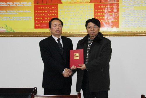 政法学院副院长宛锦春宣读了《政法学院关于聘请王辉明等律师为法学专业客座教授、副教授,聘请张扬等律师为法学专业实训导师的决定》,詹院长逐一为他们颁发了聘书并合影留念。