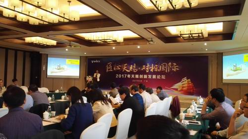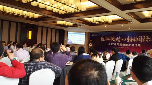 会议由广州天赐高新材料股份有限公司总经理陈汛武致欢迎词及介绍天赐公司2016年的经营状况。广州天赐高新材料股份有限公司是一上市公司,主要生产锂电池电解液、日化材料、有机硅聚合物等,产品出口50多个国家和地区,在2015年销售额9.45亿元的基础上,2016年销售额达到了18.37亿元,实现了跨越式发展!