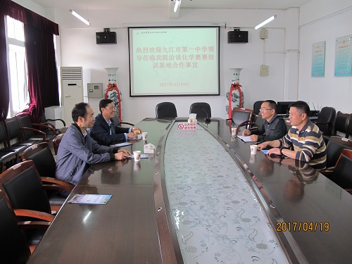 4月19日上午,九江一中副校长周明学、教导主任欧阳欢融一行来化环学院洽谈奥赛合作事宜,化环学院曹小华副院长、谢宝华副教授热情接待了周副校长一行。