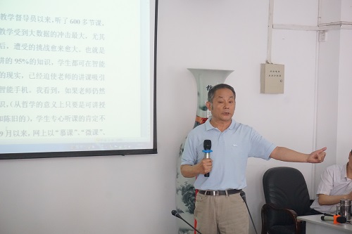 5月17日下午,原外国语学院党委书记万志祥老师应邀来到化环学院,为学院全体教职工带来了“大数据冲击下的传统课堂教学”,化环学院全体教职工参加,报告由化环学院严平院长主持。