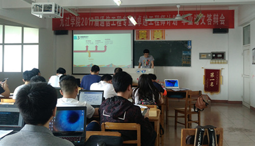 5月26日,2013级通信工程专业卓越工程师计划试点班毕业论文答辩在竞知楼9楼举行。深圳市讯方技术股份有限公司评审专家,信息科学与技术学院评审专家,电子工程学院院长高小英、副院长胡日新、张友木,毕业设计答辩组工作人员、卓越计划试点班学生参加了答辩会。