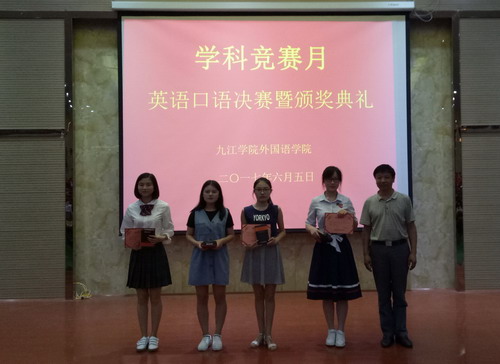为了提高学生的专业能力与思辨和创新能力,顺应国家未来发展对外语高端人才的需求,6月5日晚,外国语学院于香远楼三楼报告厅成功举办了学科竞赛月英语口语决赛暨颁奖典礼,外国语学院院长韩琨、副院长柴克清出席了此次演讲比赛,各教研室主任和各年级代表参加了此次活动。