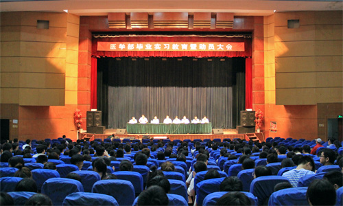 张南华书记就实习过程中的组织纪律要求、实习管理、就业、评优等工作对同学们一一做了强调;向维聂副主任就毕业实习的内容、工作程序、教学安排及毕业实习应有的学习态度与方法为同学们做了详细的讲解;贾宗林副院长宣读了实习安排名单。此次实习教育动员大会还邀请了社会科柯益民科长针对当前诊疗环境及医疗风险的防范进行了教育讲话。