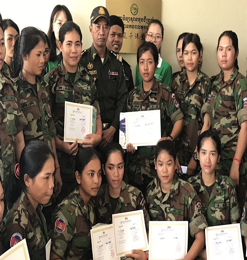 9月29日,为更好地满足金边警备旅广大官兵学习汉语的需求,激发学员对汉字书法艺术的兴趣,柬埔寨王家研究院孔子学院金边警备旅孔子课堂举办“孔子学院日”系列活动之硬笔书法比赛,警备旅衡菲克可待(HENG PHEAK KDEI)中校、凯欧赫姆拉(KEO KHEMRA)少校等出席了本次活动,警备旅孔子学院志愿者教师杨丽丽老师、武晓琳老师以及30名学员参与此次比赛。