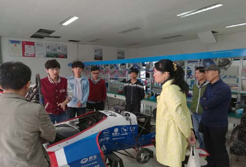 南昌大学机电工程学院副院长李玉龙、江雄心、汽车工程系主任付艳恕热情接待了机材学院师生,并引导参观了南昌大学江铃致骕油车车队和南昌大学电动方程式赛车队,江雄心副院长详细的介绍了车队安全管理,人员结构,赛车的技术研发,资金来源等情况。
