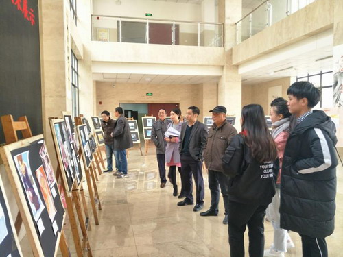 随后,招就处领导兴致勃勃地参观了艺术学院园区,观看了正在艺术大楼一楼大厅由艺术学院学生社团组织——星河联合会举办的“星艺杯”会员作品展。