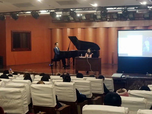 理查德∙波尔博士在此次讲座中介绍了捷克音乐与钢琴教育体系,以及偏重技术性的中欧钢琴学习与演奏传统。在讲座中,他还现场演奏了十几段捷克经典钢琴曲,受到了校内外师生的好评。杨成刚教授盛赞了波尔博士的高水平讲座和王荇荇博士的精彩翻译。