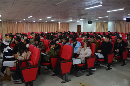 12月28日,政法学院于八里湖校区综合楼模拟法庭召开了实习动员大会。此次会议由钟文红老师与陈昊老师主持,15级毕业班同学全体参与。