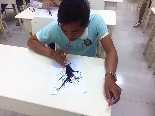 在志愿者教师杨洁的班上,“吹墨梅花”的春节班级活动热闹地进行着。当老师拿着墨水、颜料走进教室时,学生们跃跃欲试。当他们发现今天要画梅花儿的时候,全都听得特别认真。进行了简单的步骤说明以后,学生们就开始进行创作了。他们在画画的同时感受到了趣味性,并对中国的文化加深了了解。大家画出来的都非常好看,互相请教,相互交流,场面好不热闹。学习汉语三年的田西南同学(SYNAT)表示,她非常喜欢今天的活动,墨水原来这么神奇。同学们都非常喜欢自己的作品,并在活动最后合影留念珍藏。