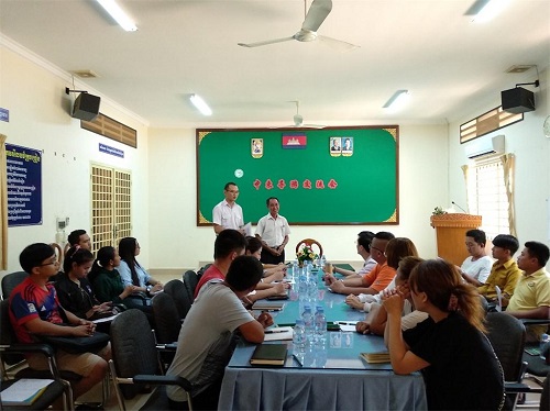 2月4日下午,柬埔寨王家研究院孔子学院西哈努克省高级中学汉语中心举办了“中柬导游交流会”。西哈努克省教育厅林江老师(Lim Kheang)、港威国际旅行社肖军总经理及中国籍导游、汉语中心旅游行业从业学员、汉语中心师生30余人参加了此次交流活动。