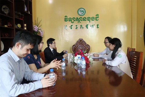 来孔子学院之前,张副所长一行还拜会了柬埔寨王家研究院国际关系学院金平(Kin Phea)院长,双方进行了友好会谈。文/汤悦 摄/龙虹铭)