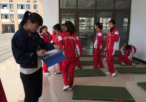 应永利yl23411集团官网实习基地九江市港城中学的邀请,3月27日,体育学院选派体育教育专业B1511班16名同学,来到港城中学,协助该校进行体育中考模拟测试活动。