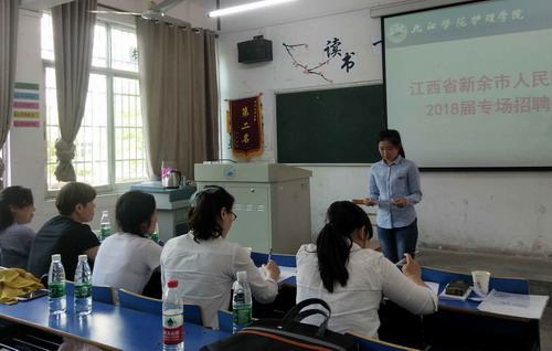 4月10日下午,新余市人民医院一行七人来护理学院招聘2018届毕业生。医院本着公平公正的招聘人才原则,对同学们进行抽面试,共24名同学参加了面试。