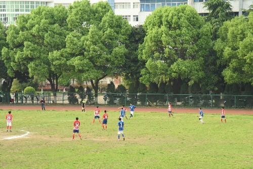 足球联赛第一战,由土建学院VS旅游学院。比赛双方很快进入了状态,整场比赛高潮迭起,各队队员激烈争夺、严密防守。上半场,双方势均力敌,难分高下,比分以0:0结束。下半场开始,在土建学院球员们默契的配合下,多次将球带到对方球门前。在临近比赛结束时连进两球。最终,土建学院足球队凭借齐心协力、顽强拼搏的精神和默契的配合赢得比赛。