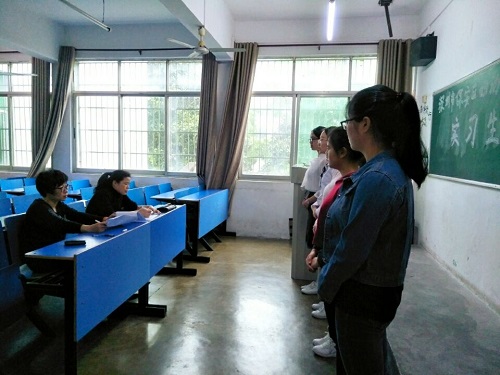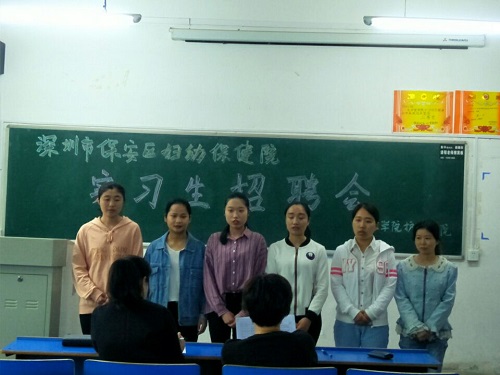 4月13日中午,学生科科长范玲玲和辅导员袁青兰老师在思贤楼206对本届报名参加深圳市宝安区妇幼保健院实习的同学进行面试选拔。