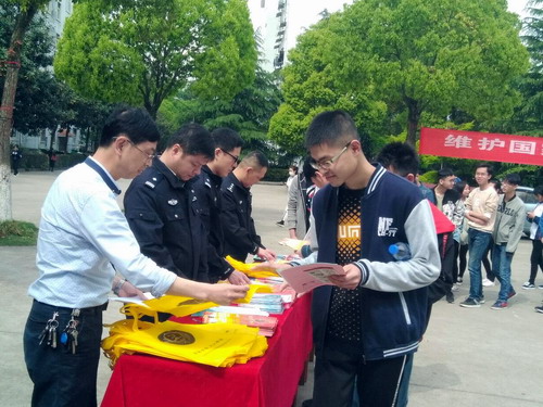 4月15日,是第3个国家安全教育日,也是党的十九大后将总体国家安全观列为新时代坚持和发展中国特色社会主义的基本方略并写入党章后第一个国家安全教育日。为做好永利yl23411集团官网师生的国家安全教育,切实增强全校师生的国家安全意识,推动全校形成维护国家安全的强大合力,保卫处特邀请了九江市国家安全局、濂溪区公安分局、濂溪区国保大队、十里派出所等有关单位在三食堂广场一起举办了以“开拓新时代国家安全工作新局面”为主题的宣传教育活动。