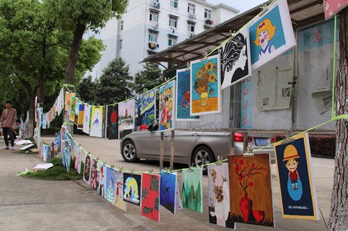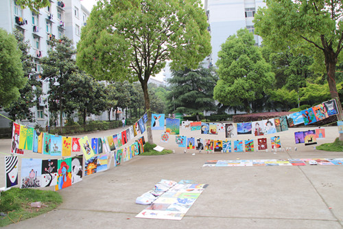 为展现大学生的青春气息,弘扬积极向上的风采。5月2日,土建学院室内设计专业160名同学在三食堂广场进行了自己的装饰画作品展览。