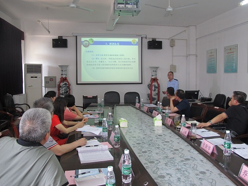 严平院长首先代表化环学院热烈欢迎河池学院同仁来院考察交流,并详细介绍了学校、学院的基本情况和运行管理模式,杨期勇副院长就学院环境类专业发展过程进行了介绍,曹小华副院长采用PPT的形式图文并茂的介绍了学院在人才培养等方面的办学特色,工程中心彭游副主任介绍了学院科研团队建设情况。随后,双方就应用化学、环境工程专业在人才培养方案、转型发展、校地(校企)合作、实验室建设、教学科研团队建设等方面进行了深入的交流和探讨。