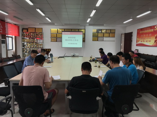 6月20日中午,体育学院在八里湖校区综合楼620召开期末学生工作会。院党委书记付和忠,学生科、团委负责人,全体辅导员、班主任参加了会议。